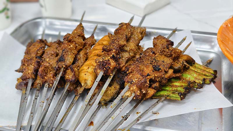 • Skewered lamb kebabs sprinkled with cumin